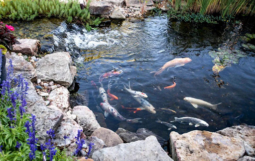 The fish pond should have good water flow. Water flow can carry away dirt from the bottom and increase oxygen in the water, which is beneficial for the growth of fish and plants. Circular or elliptical fish ponds are more likely to generate water flow, and you can also install water pumps and fountains to increase water flow.