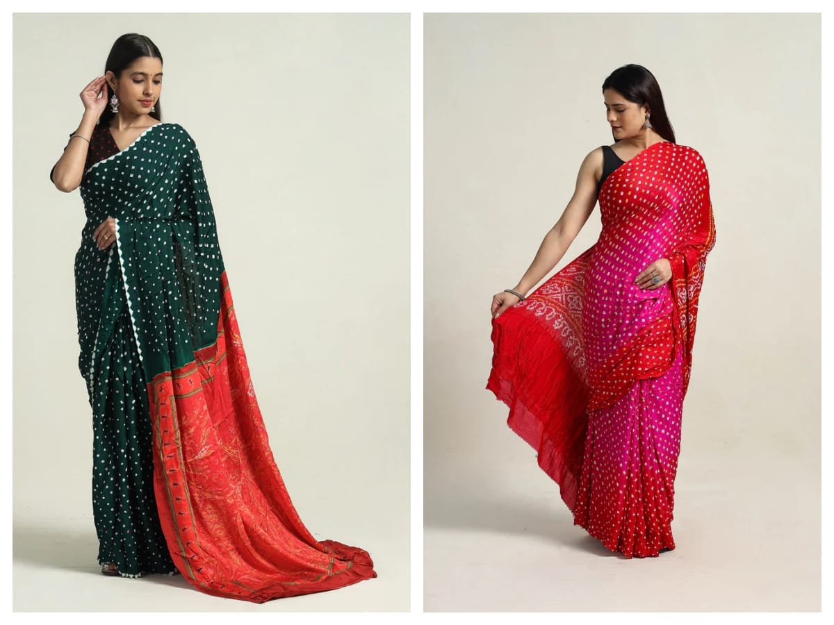- Gujarat Bandhani – renowned for its elaborate patterns and vivid reds and yellows.